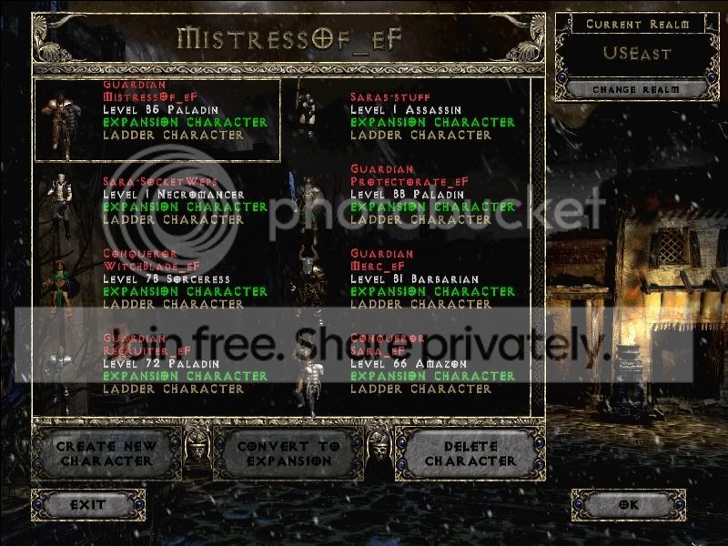 So I decided to play HC Expansion on east and things are roush at first as expected. I must have died 20 times before finally getting the hang of, "Don't stick around at 40hp, you CAN NOT die!". And so on my 21st attempt I made a poison nec and found this guy who was making a sorc about 1-2 levels ahead of me. We trist till 15 (He ran and I got exp shrines so we leveled out) and then we go to act 2 and tomb. This goes on till level 18 and we get this level 38 zealer to rush us to act 4. He says hes up to try Diablo so we let him and he gets iron maidened >> Deeds. So we go back to tombs and some random dude (*bodybags) named clownballoon joins and asks if we will help do the arcane sanctuary. Being the innocent little HCer I am I happily agree and join his game. So does my clan mate. We go to the wp and we start walking a path when he tppk's us with 50 arrows. Turns out I never looked at his level (I thought he was a sorc at first until later) or his name/account. So the next 40 games of me playing and dieing (Lagg, stupidity) he stalks me and tries to get me to enter his monster-filled town portals. I look at his level finally and he was 23 amazon. Gosh I wish i could go back and kill him.