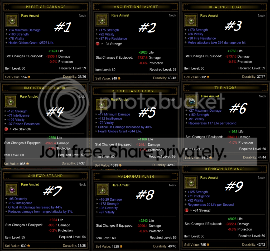 I could be possibly interested by amulet #5, chest #1 and gloves #1 but I have to check on D3 first if I have better and also the price order. I'll tell you asap !